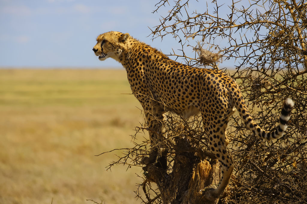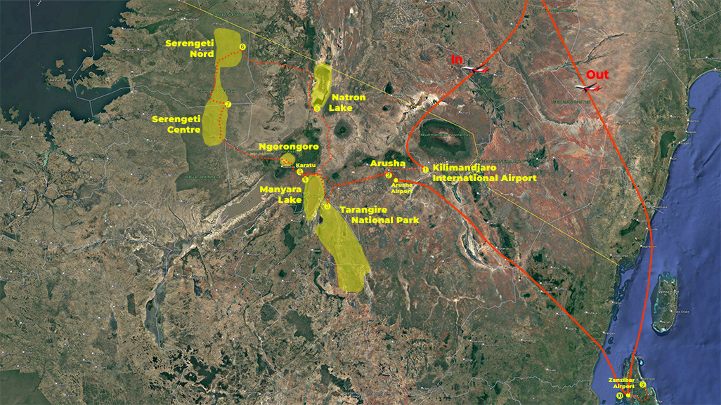 On ne peut pas visiter le nord de la Tanzanie sans passer par le Ngorongoro, le plus grand cratère intacte, la plus grande caldeira du monde, avec une superficie de 260 km² et une profondeur de 610m. Outre la beauté incroyable du paysage, la première vision depuis les crêtes est magnifique et un safari dans ce lieu exceptionnel est inoubliable. Depuis début 2006, pour des raisons de pollution et de sauvegarde de l’écosystème, les safaris sont limités à 6h par jour. Nous séjournerons ensuite à l’Acacia Farm Lodge, à Karatu.